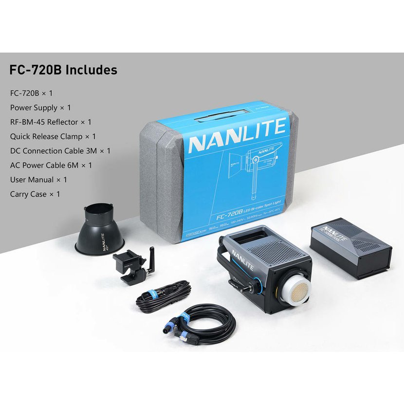 LED RGBW reflektor FC-720C: FC-720C je navržen pro rychlé scény a díky ovládání pomocí aplikace, rychlému párování a integraci DMX kompatibilní s konzolí umožňuje snadno udržet identický vzhled více světel. Díky držáku Bowens a robustnímu třmenu můžete rychle tvarovat a nasměrovat světlo pomocí modifikátorů, které již vlastníte, od softboxů po projekční nástavce.