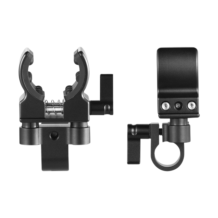 Tento držák, který je připevněn ke kameře pomocí 15mm tyčové svorky, se velmi pohodlně používá.