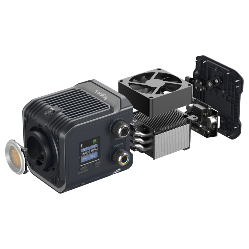 Součástí balení je komplexní řada příslušenství, plně kompatibilní s mini-mount modifikátory osvětlení SmallRig (D30, D60, softbox 45x45, mini reflektor SP), příslušenstvím pro baterie (baterie V-mount a NP-F970, nabíjecí rukojeti, destičky pro baterie NP-F) a montážním příslušenstvím (rychloupínací adaptéry pro stojany, adaptéry pro montáž Bowens, magická ramena s 1/4"-20 ARRI kolíky).