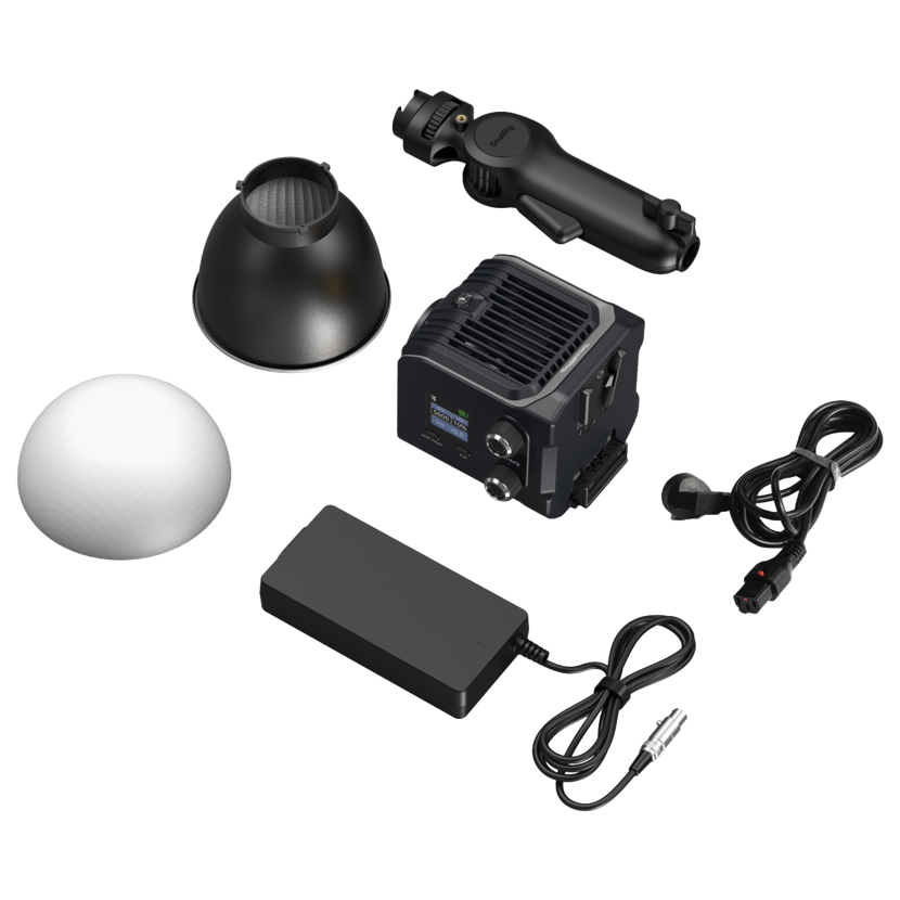 Součástí balení je komplexní řada příslušenství, plně kompatibilní s mini-mount modifikátory osvětlení SmallRig (D30, D60, softbox 45x45, mini reflektor SP), příslušenstvím pro baterie (baterie V-mount a NP-F970, nabíjecí rukojeti, destičky pro baterie NP-F) a montážním příslušenstvím (rychloupínací adaptéry pro stojany, adaptéry pro montáž Bowens, magická ramena s 1/4"-20 ARRI kolíky).
